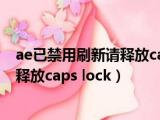 大家好,小活来为大家解答以上的问题。ae已禁用刷新请释放caps lock什么意思,ae已禁用刷新请释放caps lock这个很多人还不知道,现在让我们 浏览全文>>