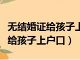 你们好,最近小活发现有诸多的小伙伴们对于无结婚证给孩子上户口妈妈可以吗,无结婚证给孩子上户口这个问题都颇为感兴趣的,今天小活为大家 浏览全文>>