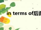 大家好,小活来为大家解答以上的问题。in terms of后面接什么,in terms of这个很多人还不知道,现在让我们一起来看看吧!1、意思是关于 浏览全文>>