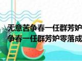 大家好,小活来为大家解答以上的问题。无意苦争春一任群芳妒零落成泥碾作尘只有香如故,无意苦争春一任群芳妒零落成泥碾作尘这个很多人还不 浏览全文>>