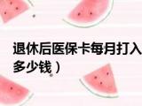 大家好,小活来为大家解答以上的问题。退休后医保卡每月打入多少钱合适,退休后医保卡每月打入多少钱这个很多人还不知道,现在让我们一起来看 浏览全文>>