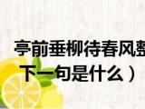 大家好,小活来为大家解答以上的问题。亭前垂柳待春风整首诗,亭前垂柳珍重待春风 下一句是什么这个很多人还不知道,现在让我们一起来看看吧 浏览全文>>