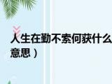 大家好,小活来为大家解答以上的问题。人生在勤不索何获什么意思谁说的,人生在勤不索何获什么意思这个很多人还不知道,现在让我们一起来看看 浏览全文>>