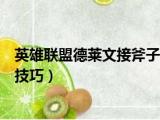 大家好,小活来为大家解答以上的问题。英雄联盟德莱文接斧子技巧是什么,英雄联盟德莱文接斧子技巧这个很多人还不知道,现在让我们一起来看看 浏览全文>>