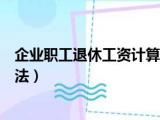 大家好,小活来为大家解答以上的问题。企业职工退休工资计算方法公式,企业职工退休工资计算方法这个很多人还不知道,现在让我们一起来看看吧 浏览全文>>