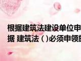 大家好,小活来为大家解答以上的问题。根据建筑法建设单位申领施工许可证应当具备的条件有,根据 建筑法 ( )必须申领施工许可证这个很多 浏览全文>>
