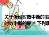 大家好,小活来为大家解答以上的问题。关于诉讼时效中断的表述下列哪一选项是正确的,关于诉讼时效中断的表述 下列哪一选项是正确的这个很 浏览全文>>