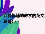 大家好,小活来为大家解答以上的问题。计算机辅助教学的英文缩写是cai,计算机辅助教学的英文缩写是( )这个很多人还不知道,现在让我们一起 浏览全文>>