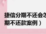你们好,最近小活发现有诸多的小伙伴们对于捷信分期不还会怎么样会不会进监狱,捷信分期不还款案例这个问题都颇为感兴趣的,今天小活为大家 浏览全文>>