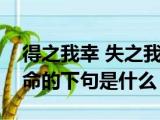 大家好,小活来为大家解答以上的问题。得之我幸 失之我命啥意思,得之我幸失之我命的下句是什么这个很多人还不知道,现在让我们一起来看看吧 浏览全文>>