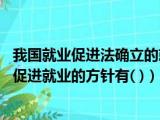大家好,小活来为大家解答以上的问题。我国就业促进法确立的就业促进方针,根据就业促进法 我国促进就业的方针有( )这个很多人还不知道,现 浏览全文>>