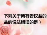 大家好,小活来为大家解答以上的问题。下列关于所有者权益的说法 不正确的是,下列关于所有者权益的说法错误的是这个很多人还不知道,现在让 浏览全文>>