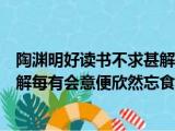 大家好,小活来为大家解答以上的问题。陶渊明好读书不求甚解每有会意便欣然忘食,好读书不求甚解每有会意便欣然忘食这个很多人还不知道,现在 浏览全文>>
