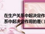 大家好,小活来为大家解答以上的问题。在生产关系中起决定作用的是产品的分配和交换,在生产关系中起决定作用的是( )这个很多人还不知道,现 浏览全文>>