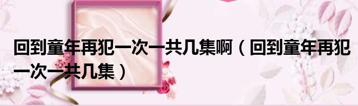 大家好,小东方来为大家解答以上的问题。回到童年再犯一次一共几集啊,回到童年再犯一次一共几集这个很多人还不知道,现在让我们一起来看看吧!