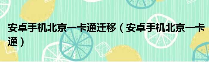 你们好,最近小活发现有诸多的小伙伴们对于安卓手机北京一卡通迁移,安卓手机北京一卡通这个问题都颇为感兴趣的,今天小活为大家梳理了下,一起往下看看吧。