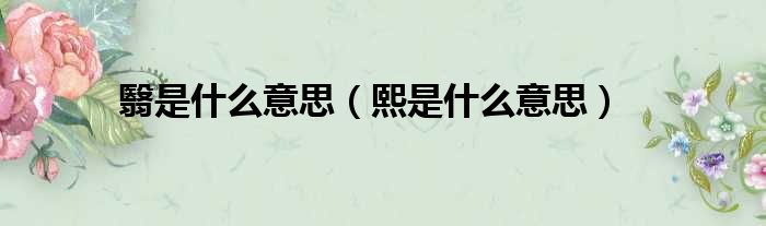 大家好,小活来为大家解答以上的问题。翳是什么意思,熙是什么意思这个很多人还不知道,现在让我们一起来看看吧!