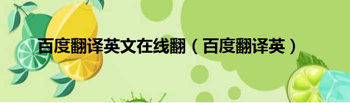 大家好,小活来为大家解答以上的问题。百度翻译英文在线翻,百度翻译英这个很多人还不知道,现在让我们一起来看看吧!
