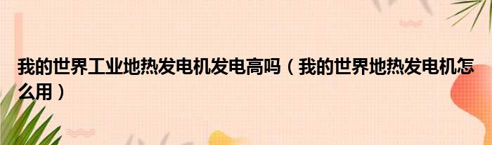我的世界工业地热发电机发电高吗(我的世界地热发电机怎么用),急!求解答,求不敷衍我!