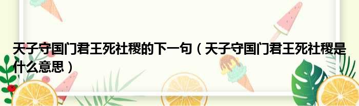 大家好,小活来为大家解答以上的问题。天子守国门君王死社稷的下一句,天子守国门君王死社稷是什么意思这个很多人还不知道,现在让我们一起来看看吧!