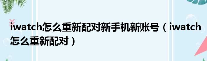 大家好,小活来为大家解答以上的问题。iwatch怎么重新配对新手机新账号,iwatch怎么重新配对这个很多人还不知道,现在让我们一起来看看吧!