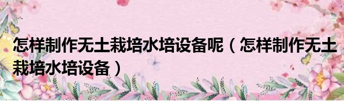 大家好,小活来为大家解答以上的问题。怎样制作无土栽培水培设备呢,怎样制作无土栽培水培设备这个很多人还不知道,现在让我们一起来看看吧!