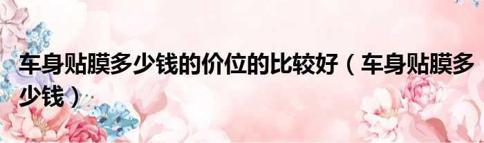 以上就是车身贴膜多少钱这篇文章的一些介绍,希望对大家有所帮助。