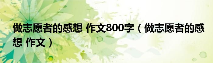大家好,小活来为大家解答以上的问题。做志愿者的感想 作文800字,做志愿者的感想 作文这个很多人还不知道,现在让我们一起来看看吧!