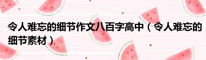 大家好,小活来为大家解答以上的问题。令人难忘的细节作文八百字高中,令人难忘的细节素材这个很多人还不知道,现在让我们一起来看看吧!