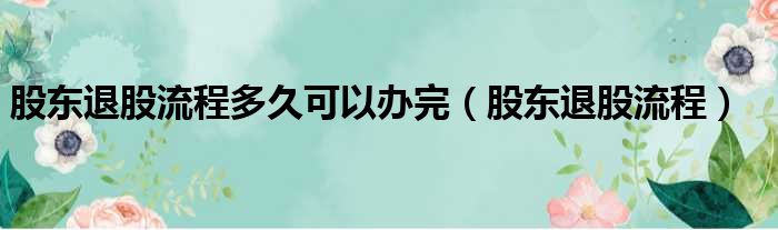 大家好,小活来为大家解答以上的问题。股东退股流程多久可以办完,股东退股流程这个很多人还不知道,现在让我们一起来看看吧!