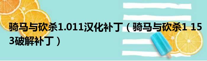 骑马与砍杀1.011汉化补丁(骑马与砍杀1 153破解补丁),急到跺脚,求解答!