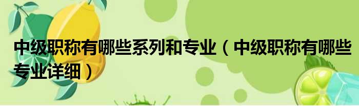 大家好,小活来为大家解答以上的问题。中级职称有哪些系列和专业,中级职称有哪些专业详细这个很多人还不知道,现在让我们一起来看看吧!