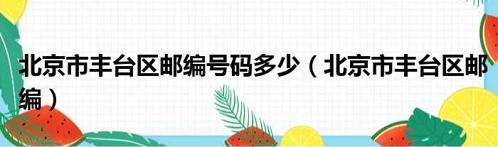 大家好,小活来为大家解答以上的问题。北京市丰台区邮编号码多少,北京市丰台区邮编这个很多人还不知道,现在让我们一起来看看吧!