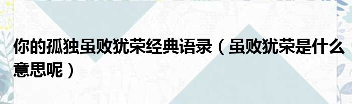 大家好,小活来为大家解答以上的问题。你的孤独虽败犹荣经典语录,虽败犹荣是什么意思呢这个很多人还不知道,现在让我们一起来看看吧!