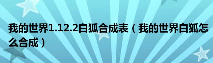 我的世界1.12.2白狐合成表(我的世界白狐怎么合成),真的撑不住了,求高手支招!