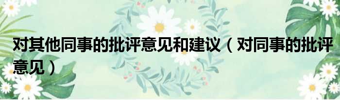 大家好,小活来为大家解答以上的问题。对其他同事的批评意见和建议,对同事的批评意见这个很多人还不知道,现在让我们一起来看看吧!