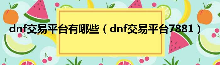 大家好,小活来为大家解答以上的问题。dnf交易平台有哪些,dnf交易平台7881这个很多人还不知道,现在让我们一起来看看吧!