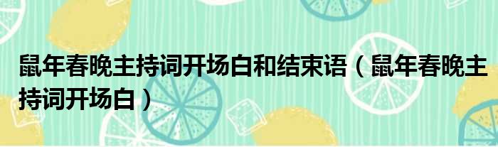 大家好,小活来为大家解答以上的问题。鼠年春晚主持词开场白和结束语,鼠年春晚主持词开场白这个很多人还不知道,现在让我们一起来看看吧!