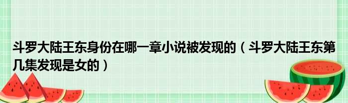 斗罗大陆王东身份在哪一章小说被发现的(斗罗大陆王东第几集发现是女的),快急哭了,求给个正确方向!