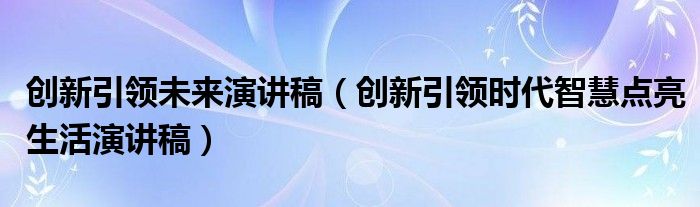 大家好,小活来为大家解答以上的问题。创新引领未来演讲稿,创新引领时代智慧点亮生活演讲稿这个很多人还不知道,现在让我们一起来看看吧!