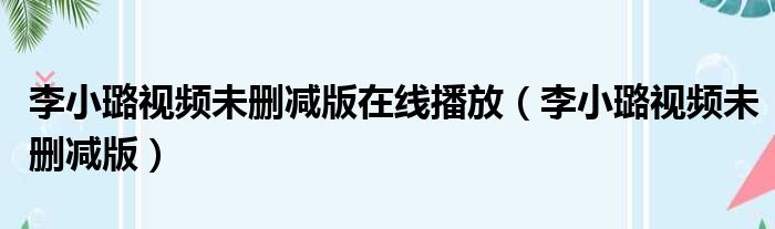 李小璐视频未删减版在线播放(李小璐视频未删减版),真的撑不住了,求高手支招!
