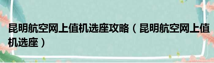 昆明航空网上值机选座攻略(昆明航空网上值机选座),有没有大神路过?求指点迷津!