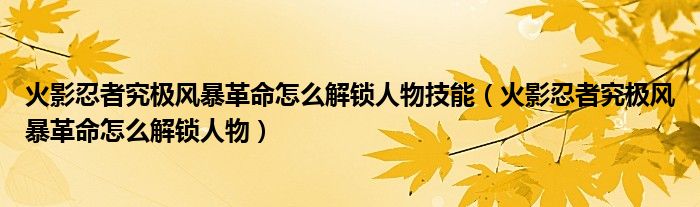 火影忍者究极风暴革命怎么解锁人物技能(火影忍者究极风暴革命怎么解锁人物),急到抓头发,求解答!