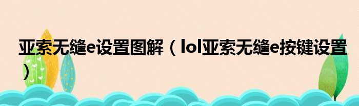 亚索无缝e设置图解(lol亚索无缝e按键设置),求快速支援,时间不多了!