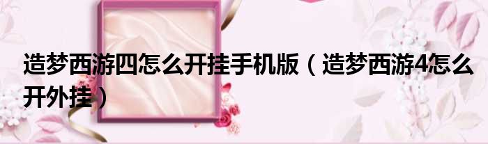 造梦西游四怎么开挂手机版(造梦西游4怎么开外挂),急!求解答,求别忽视我的问题!