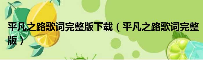 大家好,小活来为大家解答以上的问题。平凡之路歌词完整版下载,平凡之路歌词完整版这个很多人还不知道,现在让我们一起来看看吧!