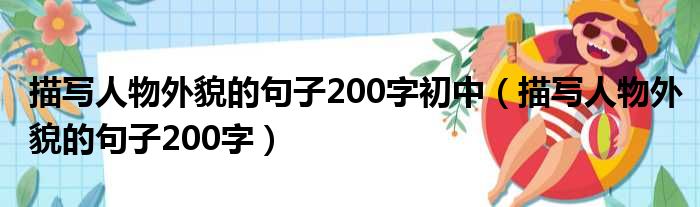大家好,小活来为大家解答以上的问题。描写人物外貌的句子200字初中,描写人物外貌的句子200字这个很多人还不知道,现在让我们一起来看看吧!