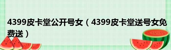 大家好,小活来为大家解答以上的问题。4399皮卡堂公开号女,4399皮卡堂送号女免费送这个很多人还不知道,现在让我们一起来看看吧!