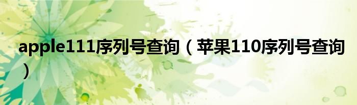 大家好,小活来为大家解答以上的问题。apple111序列号查询,苹果110序列号查询这个很多人还不知道,现在让我们一起来看看吧!