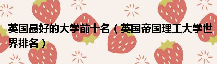 大家好,小活来为大家解答以上的问题。英国最好的大学前十名,英国帝国理工大学世界排名这个很多人还不知道,现在让我们一起来看看吧!